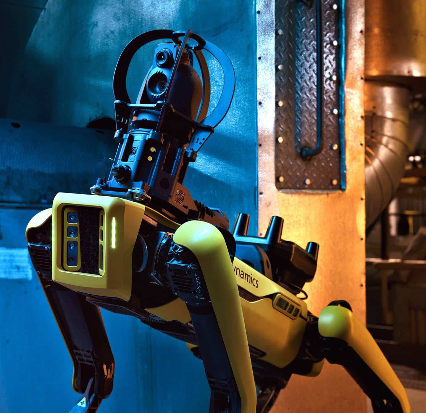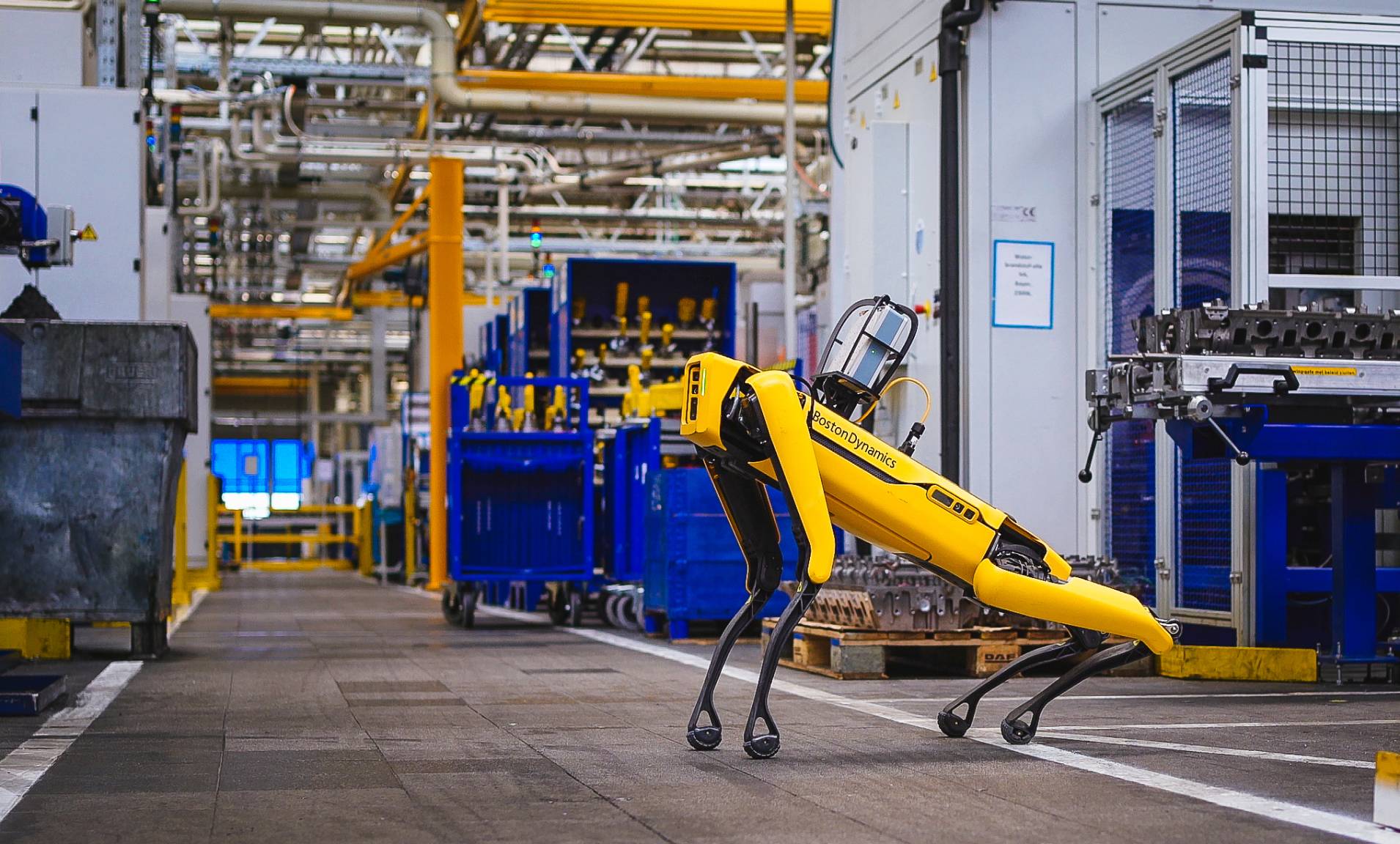 A Purina branded Spot working in a manufacturing facility